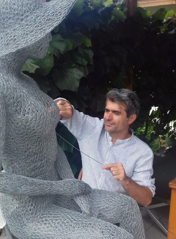 Jmenuji se Karel Nývlt, jsem muž středního věku. Duchem se cítím snad i mladší, s uměleckými myšlenkami. V mládí za totality jsem vystudoval střední průmyslovou školu strojní v Praze, ale bohužel už tehdy to měla být škola uměleckého směru. Od té doby, ve svém volném čase, jsem jako amatér maloval obrázky, lepil mozaiky z keramických střepů i ze skla, vyřezával ze dřeva, absolvoval kurs a naučil se techniku Tiffany (práce s vitrážovým sklem.) Jednoho dne jsem však v médiích objevil tvorbu vystudovaného britského umělce, který vytváří sochy z jemného pozinkovaného pletiva v životní velikosti. Je to práce zdlouhavá, manuálně poměrně náročná, často s rozpíchanými prsty. Pro cit a ohýbání drátů by byl však kontakt s nástroji v rukavicích nemyslitelný. Tato technika mne natolik pohltila, že se jí věnuji již třetím rokem. Postupně pronikám hlouběji do tajů této techniky, proporce a detaily soch jsou propracovanější. V této době vytvářím drátěné sochy pro svoji radost, několik kusů se již vyskytuje mezi mými přáteli. V noci nebo v zimním období, pokud je socha protkána jemným LED světelným řetězem, je na ni pohled o to krásnější. Ale tomu asi porozumí jen romantické povahy, mezi které jistě patřím i já. Pokud si dokážete představit takovou sochu i ve Vašem interiéru, zimní zahradě nebo třeba usazenou na lavičce v květinovém zákoutí Vašeho domu a pohled na ni by Vás těšil, věřte, že jsem nyní schopen ji pro Vás vyrobit na zakázku...